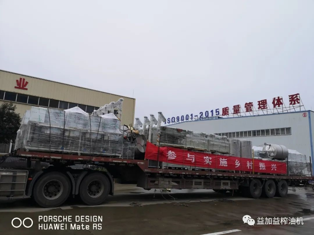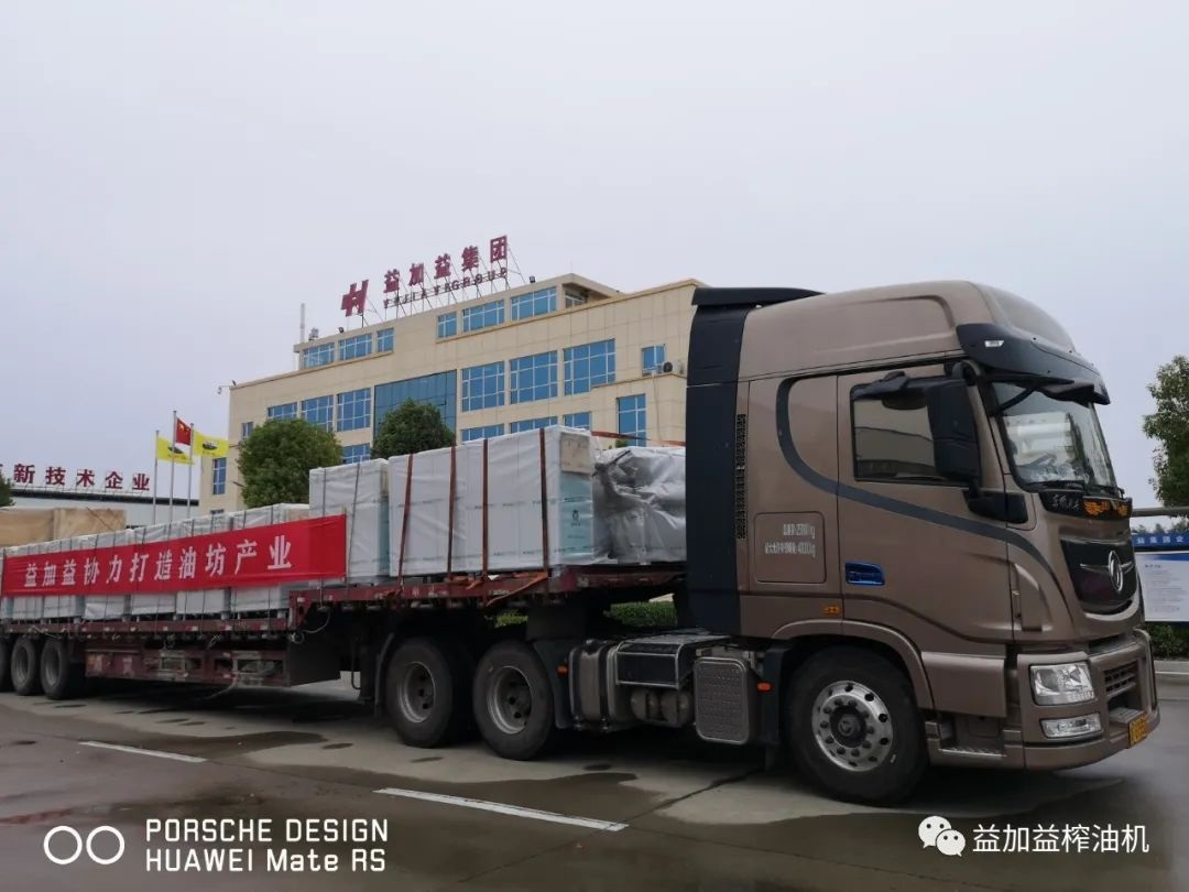 國慶節后開工第一天,訂單忙、生產忙、發貨忙......益加益產業園區內一派繁忙景象。在發貨現場,運輸物流車輛忙碌不停,一輛接一輛緩緩駛出,一臺臺“益加益制造”的高品質榨油機,發往廣西自治區百色市田林縣各個山茶油專業合作社。