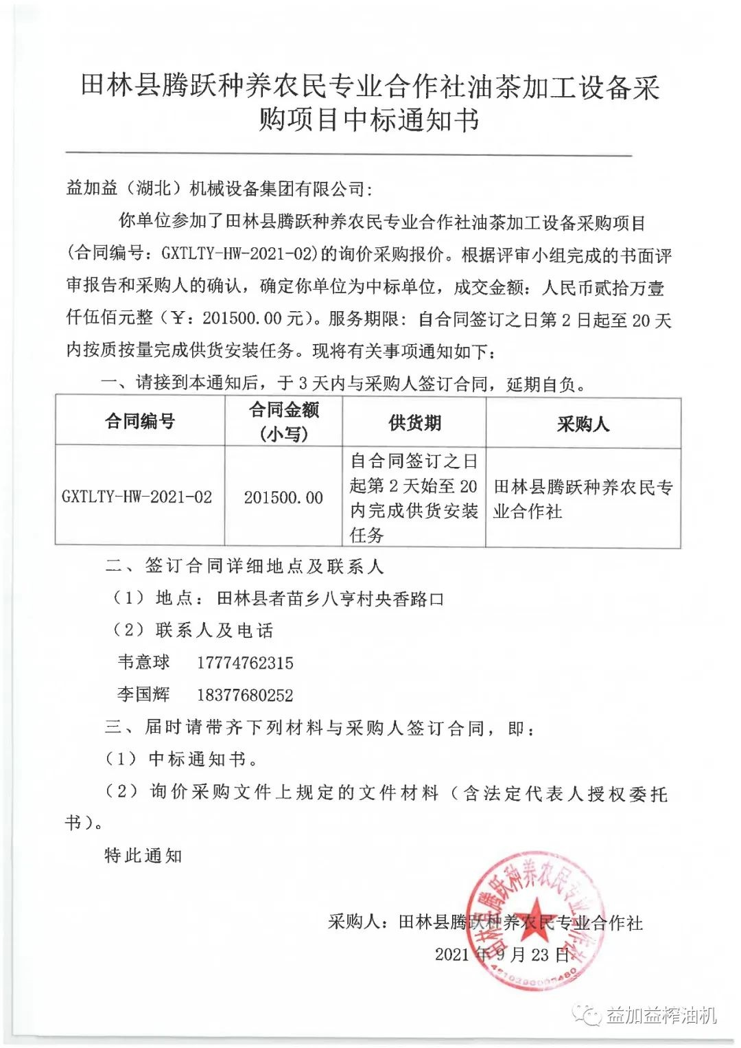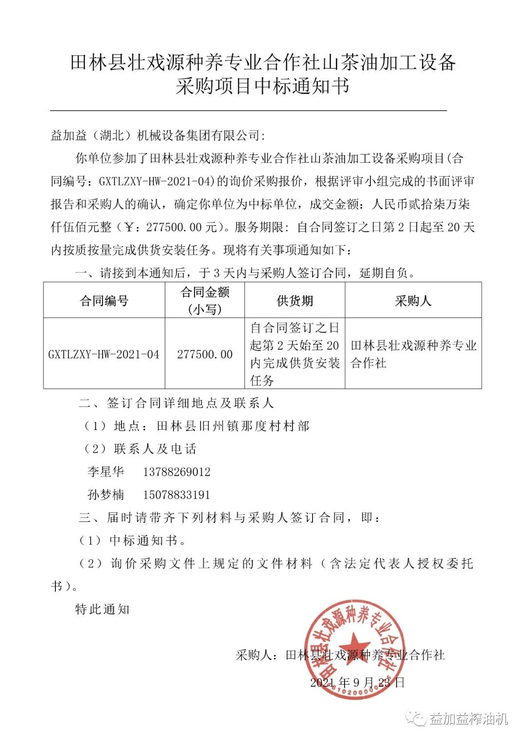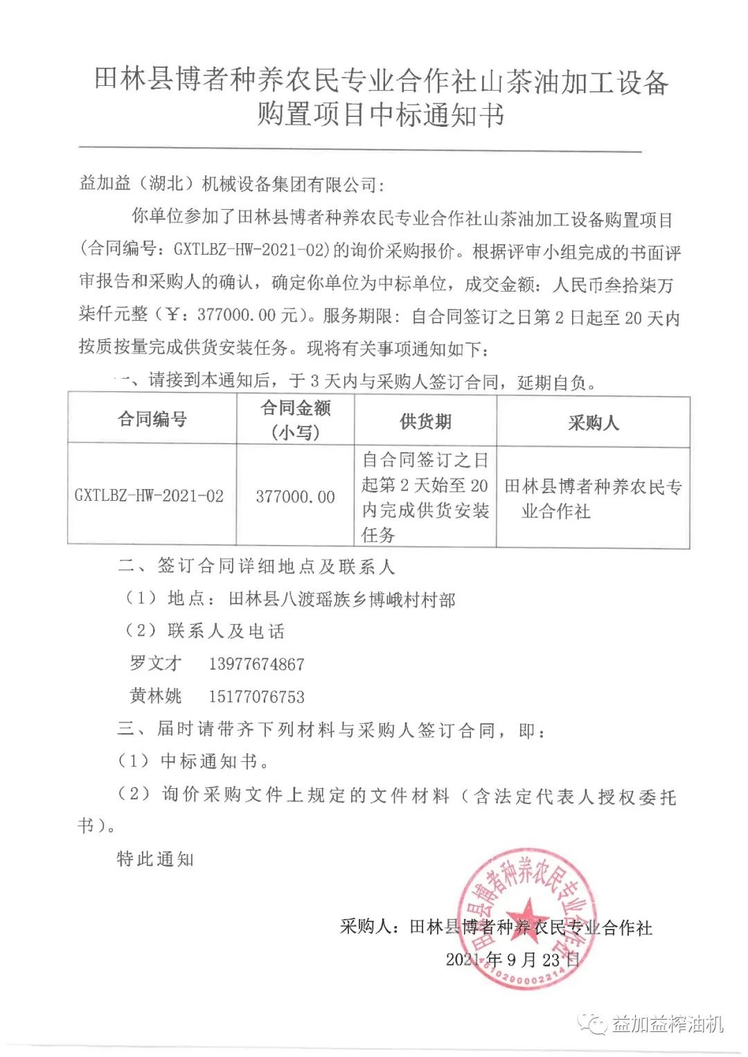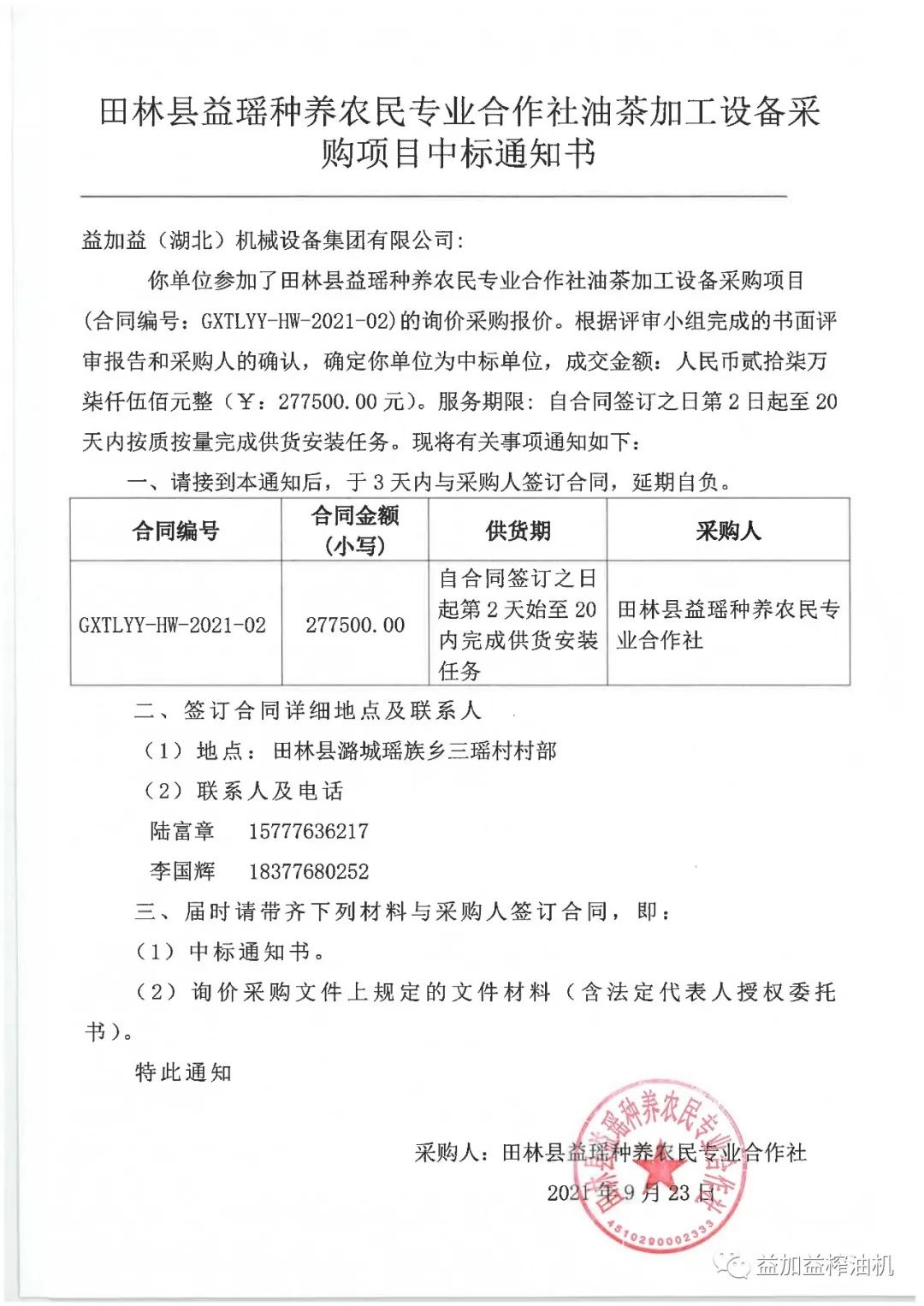 益加益集團憑借過硬的產品質量,扎實高效的工作作風,卓越的運作團隊和良好的企業信譽,在眾多競爭對手中脫穎而出,連續中標《中華人民共和國世界銀行貸款廣西貧困片區農村扶貧試點示范項目》中全部11家專業合作社山茶油加工設備的招標購置。